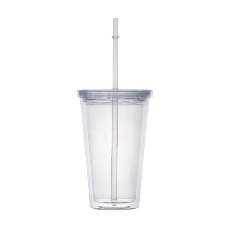 Plastic cup creative full transparent flat cover milk tea cup glitter card cup double layer drinking cup straw cup